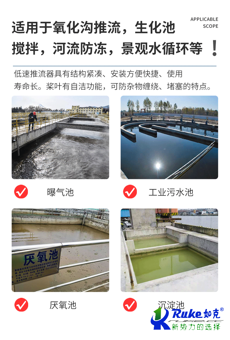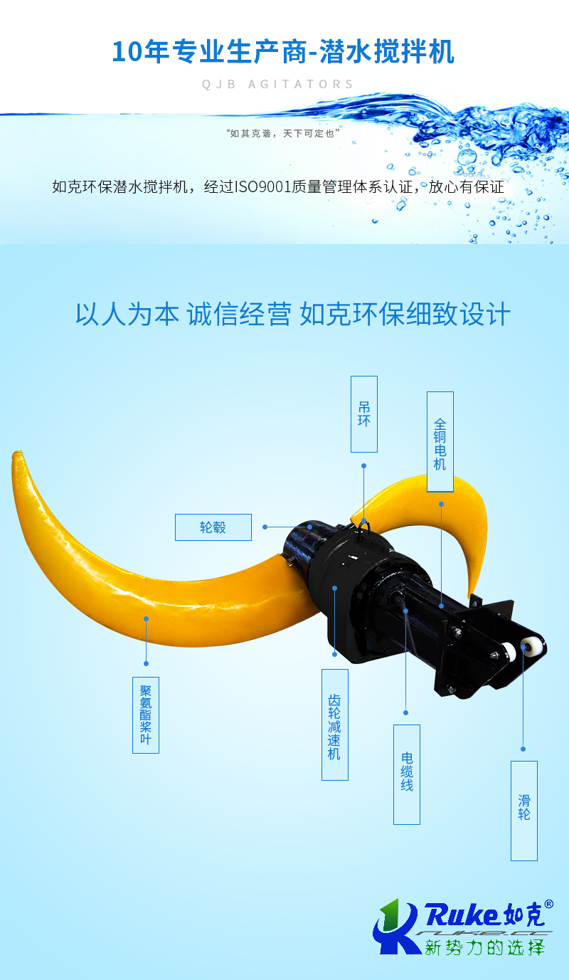 江蘇如克(www.xyqjyqyb.cn)是一家主營推流曝氣機,潛水攪拌機,噴泉式曝氣機,干式攪拌機,吸沫機,餐廚垃圾處理設備等環保設備的廠家,我們的產品價格優惠,型號全,服務好,歡迎洽談合作!