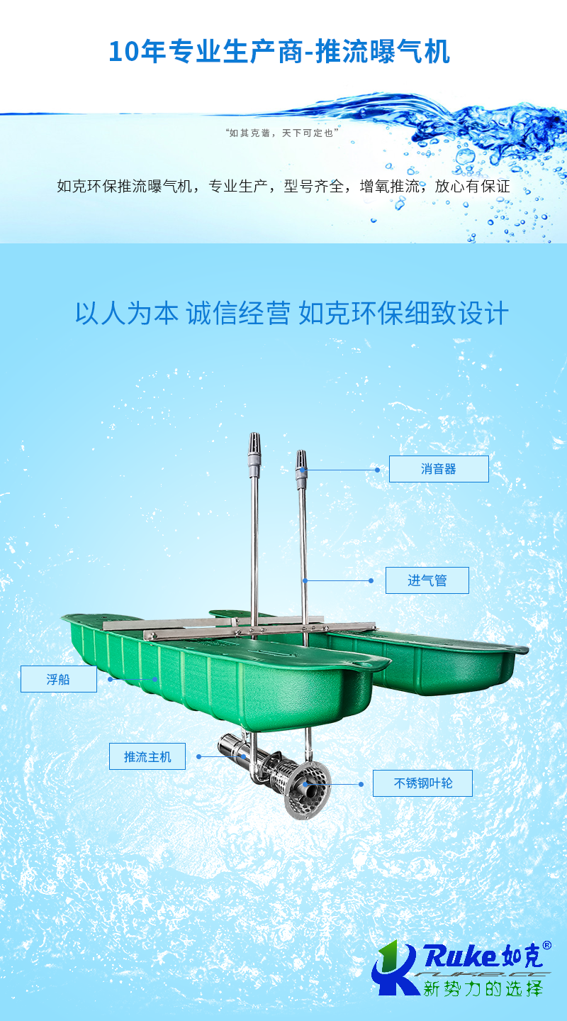 江蘇如克(www.xyqjyqyb.cn)是一家主營推流曝氣機,潛水攪拌機,噴泉式曝氣機,干式攪拌機,吸沫機,餐廚垃圾處理設備等環保設備的廠家,我們的產品價格優惠,型號全,服務好,歡迎洽談合作!